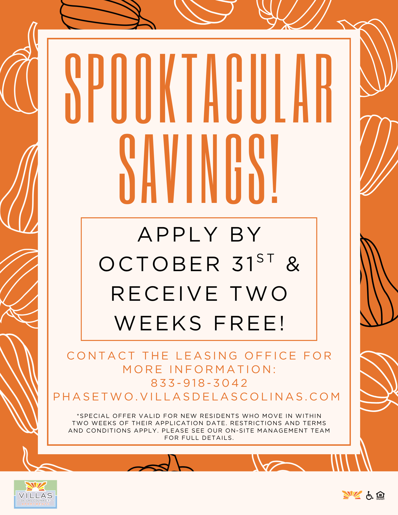 Apply by October 31st & receive two weeks free! Contact the Leasing Office for more information!⤵️ ¡Solicita antes del 31 de octubre y recibe dos semanas gratis! ¡Contacta con la Oficina de Arrendamiento para más información!⤵️