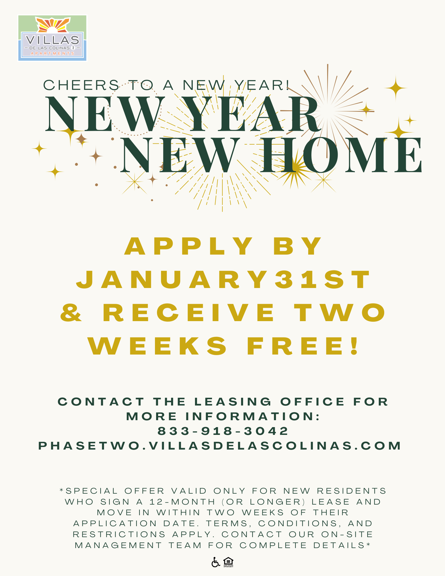 Apply by January 31st & receive two weeks free on 12+ month leases! Contact the Leasing Office for more information!⤵️ ¡Solicita antes del 31 de enero y recibe dos semanas gratis en contratos de arrendamiento de más de 12 meses! ¡Contacta con la oficina de arrendamiento para más información!⤵️